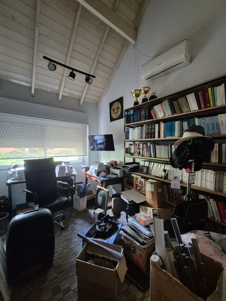 En planta alta se encuentran tres dormitorios, acompañados por dos baños completos, además de un escritorio, ideal para home office o estudio, y un altillo que puede utilizarse como sala de juegos, espacio recreativo o área multifuncional.