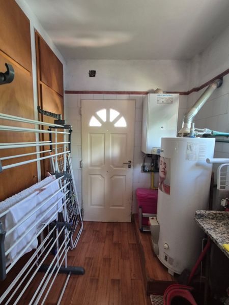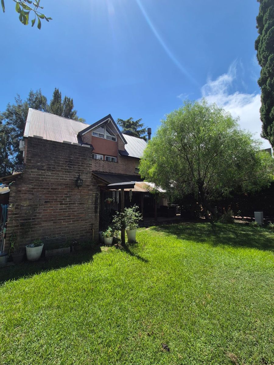 La propiedad se desarrolla en dos plantas y cuenta con una distribución pensada para brindar comodidad y espacios amplios para la vida diaria. En planta baja encontramos un cálido living con hogar, ideal para reuniones familiares o momentos de descanso, además de una cocina comedor funcional, toilette y lavadero. Desde el interior se accede a una galería con parrilla, que se integra con el jardín con sistema de riego, generando un espacio perfecto para disfrutar del aire libre y de reuniones sociales. La propiedad también dispone de espacio descubierto para hasta tres vehículos.