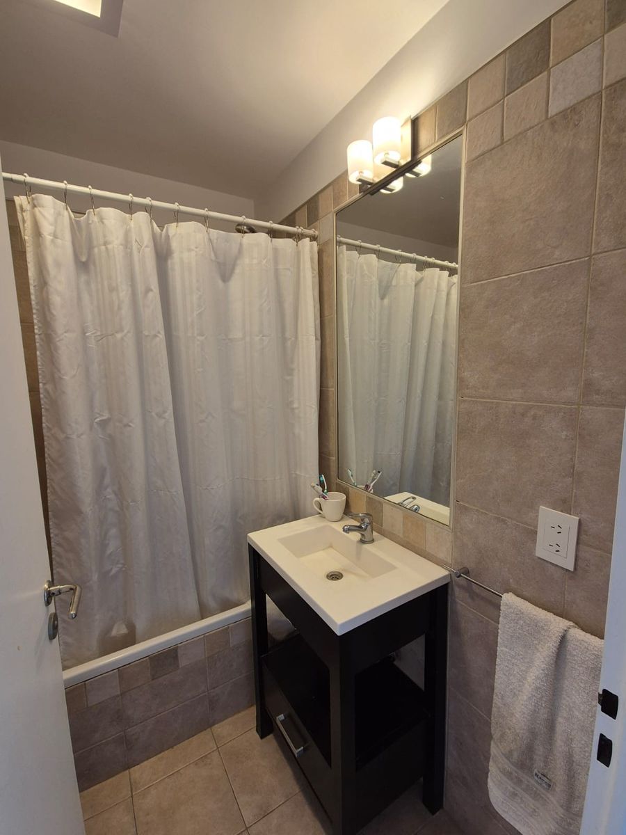 El departamento se alquila completamente amueblado, incluyendo lavarropas, heladera con freezer, horno microondas, sofá de tres cuerpos, mesa con seis sillas, dos camas de una plaza, un sommier de dos plazas, mesa exterior con banquetas y dos equipos de aire acondicionado, ofreciendo así una solución lista para habitar.